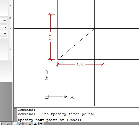 La designación del segundo punto mantiene la visualización de un cursor elástico vinculado al primero que resulta muy útil, y la información se presenta en la línea de órdenes, o en la pantalla de texto (ocupa varias líneas), o bien si tenemos activada la “entrada dinámica” se presenta en la pantalla de forma mucho más clara.
