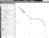 Para dibujar el área contraria siempre podemos repetir estas operaciones, pero parece más lógico utilizar la orden «SIMETRIA(_MIRROR)» que se encuentra en los menús de modificación. Esta orden trabaja designando en primer lugar un conjunto de objetos, que en nuestro caso serán el tramo recto y los dos arcos que definen el área, y a continuación se define gráficamente el eje de simetría señalando un par de puntos en la pantalla gráfica.